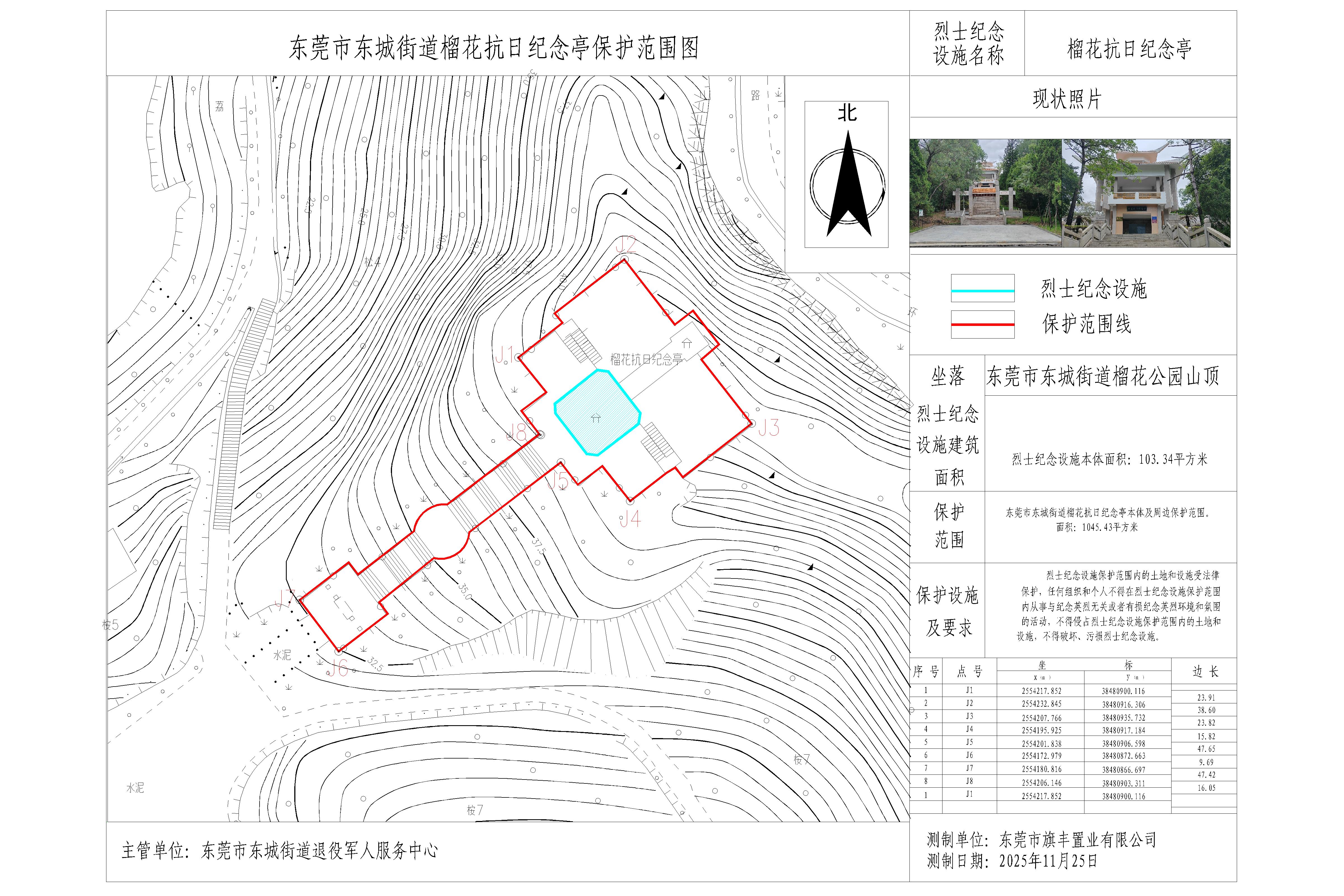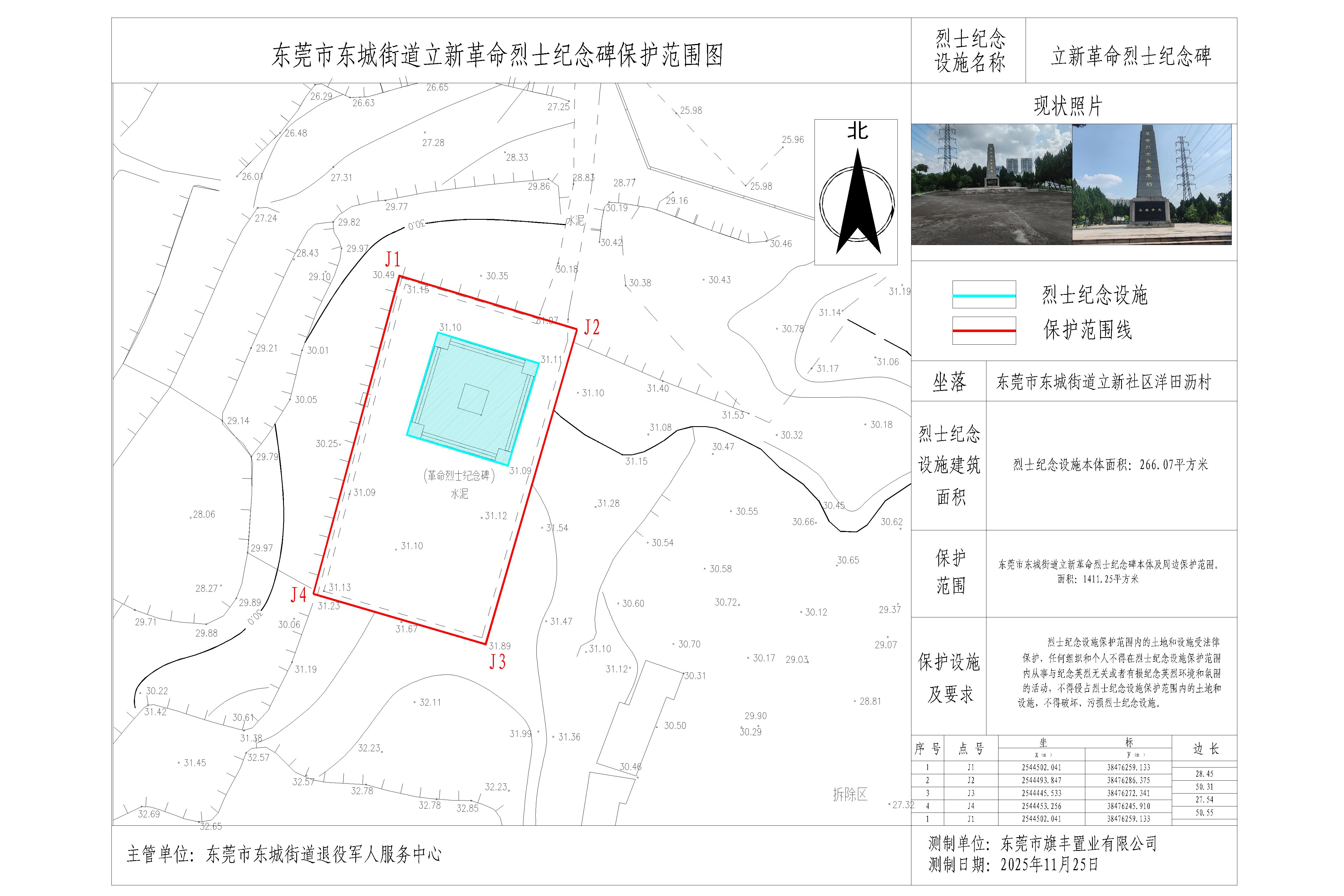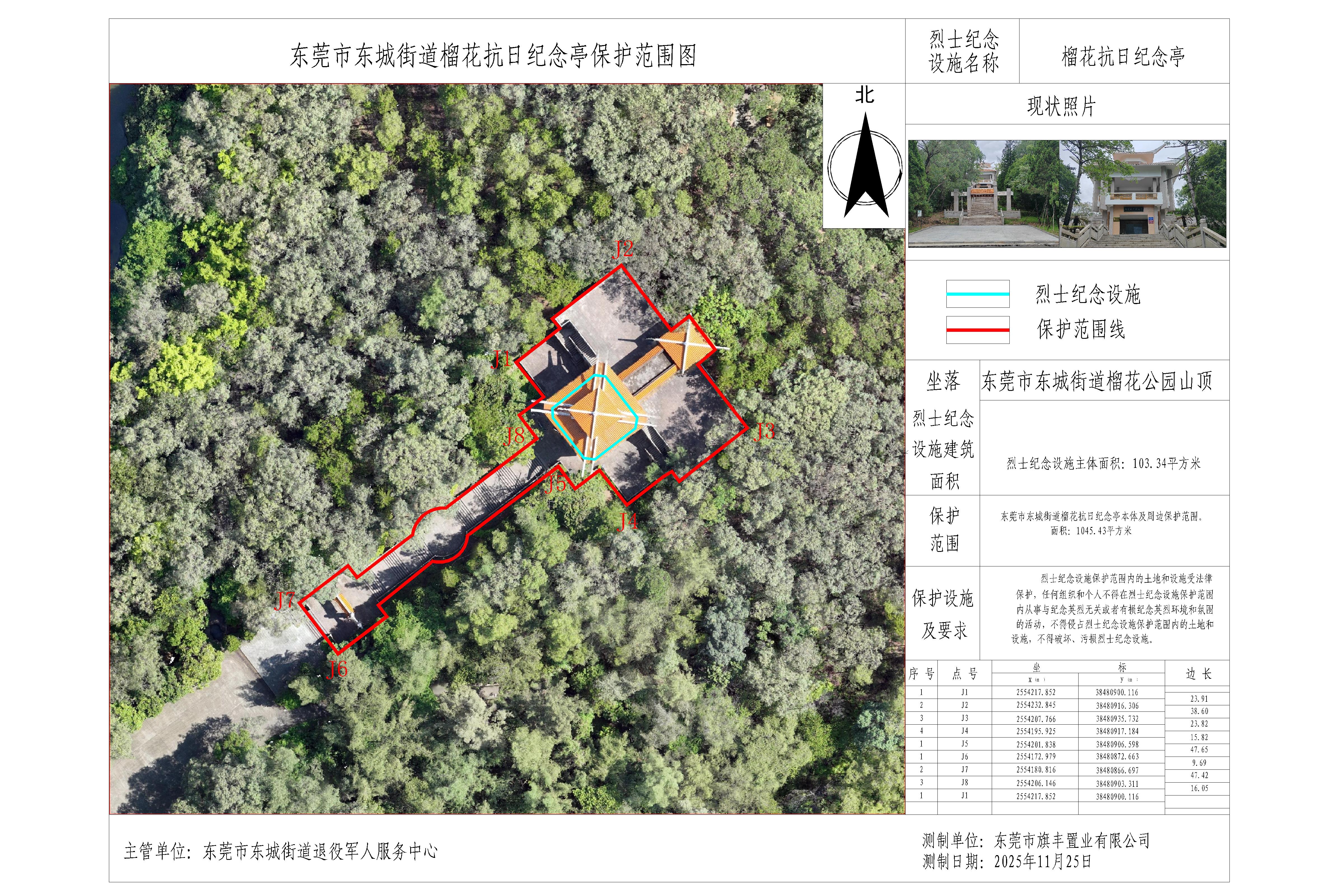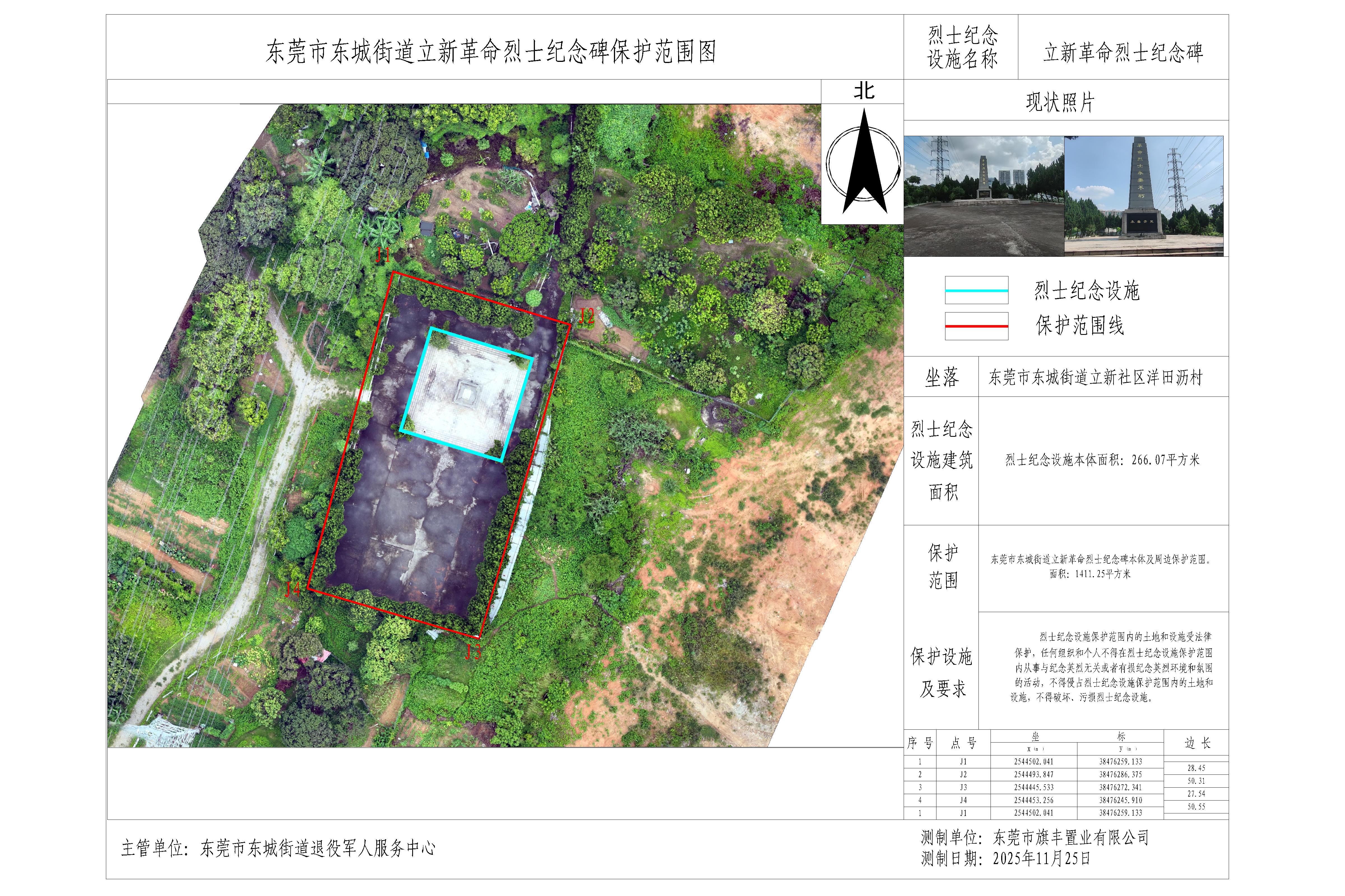为深入贯彻习近平总书记关于烈士褒扬工作重要指示精神,传承弘扬英烈精神和爱国主义精神,更好发挥烈士纪念设施褒扬英烈、教育后人的红色资源作用,切实提升纪念设施的保护管理水平,根据《中华人民共和国英雄烈士保护法》、《烈士褒扬条例》、《烈士纪念设施保护管理办法》等有关规定,经东莞市东城街道办事处同意,现将东莞市东城街道革命烈士纪念设施保护范围方案公布如下: